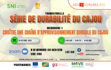L'Alliance pour le Cajou Africain (ACA) en partenariat avec la Sustainable Nut Initiative (SNI) avec le financement de l'Union Européenne (UE), l'Organisation des Etats d'Afrique, des Caraïbes et du Pacifique (OEACP) et la GIZ ont commencé un nouveau webinaire intitulé la Série de Durabilité du Cajou pour discuter des questions de durabilité dans l'industrie du cajou...