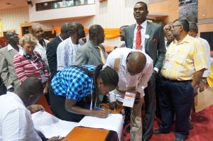 From left to right: Jace Rabe, V. Rajkumar, Koffi Yao Appia, Georgette Taraf, Edgar Maokola-Majogo, a representative for Patrick Wainaina, Tola Faseru, et Christian Dahm